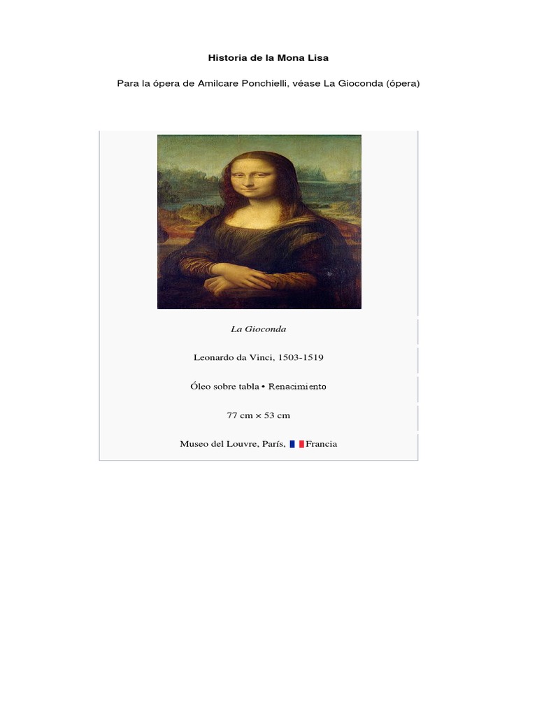 Historia de La Mona Lisa | PDF | Leonardo Da Vinci | Pinturas