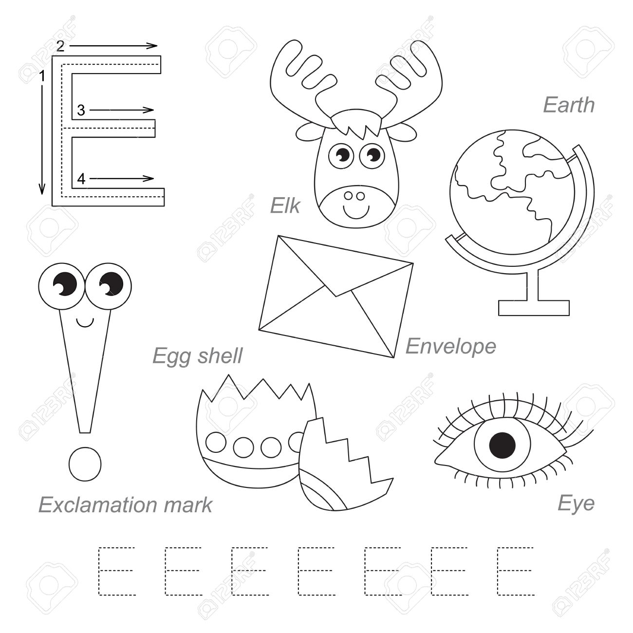Una hoja de trabajo para niños con la letra E para aprender el alfabeto inglés Imagen Vector de stock - Alamy
