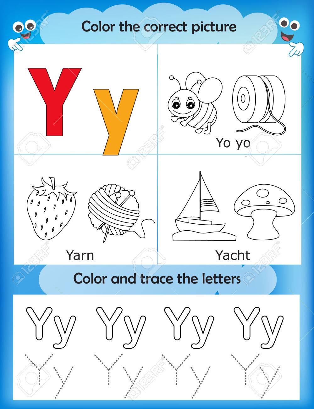 Hojas De Trabajo De Aprendizaje Para Niños Y Letras De Color. Juego Educativo Para Reconocer La Forma Del Alfabeto. Letra Y Ilustración del Vector - Ilustración de hoja, imprimible: 237997838