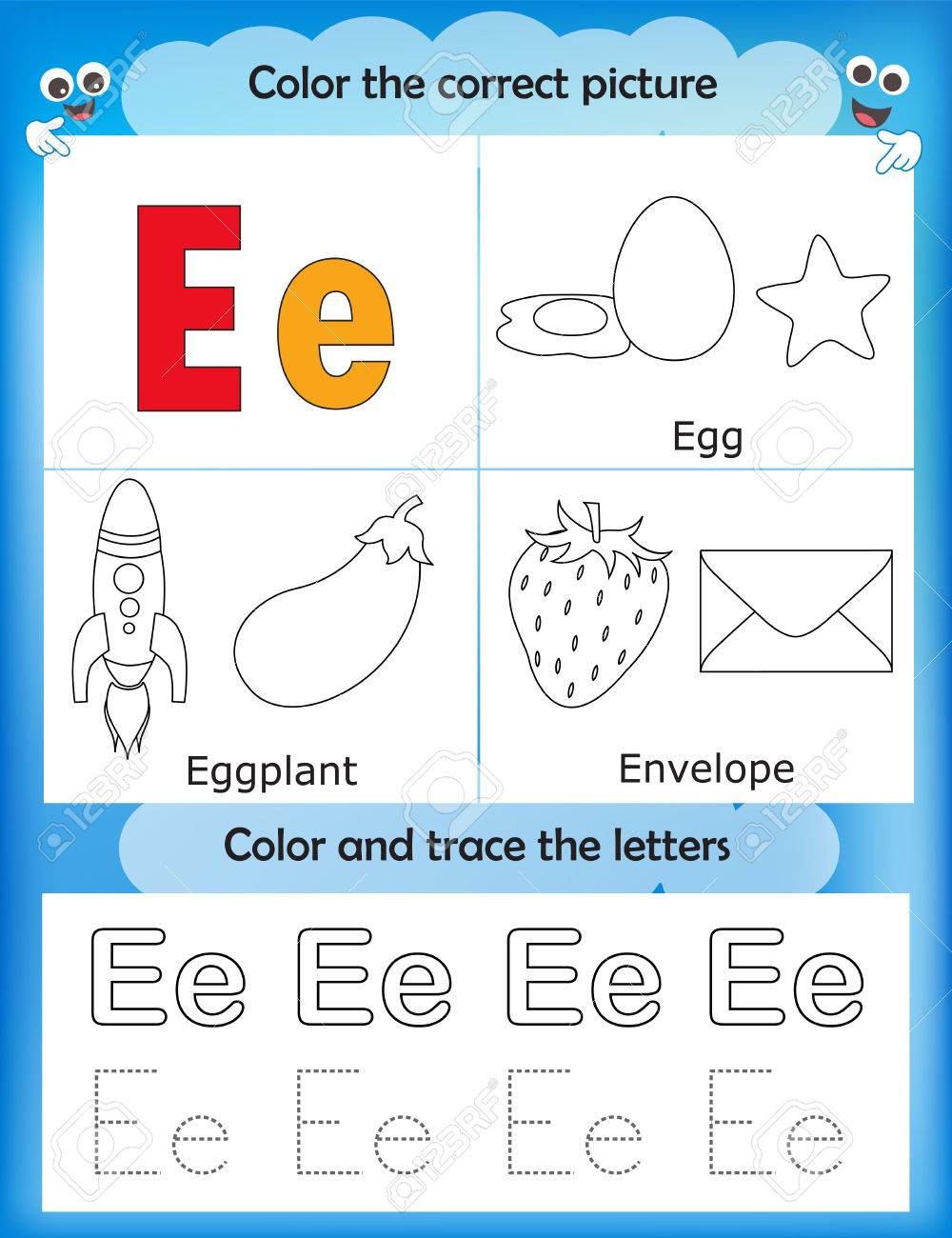 Hojas De Trabajo De Aprendizaje Para Niños Y Letras De Color. Juego Educativo Para Reconocer La Forma Del Alfabeto. Letra E Ilustración del Vector - Ilustración de escuela, estudiante: 237997644
