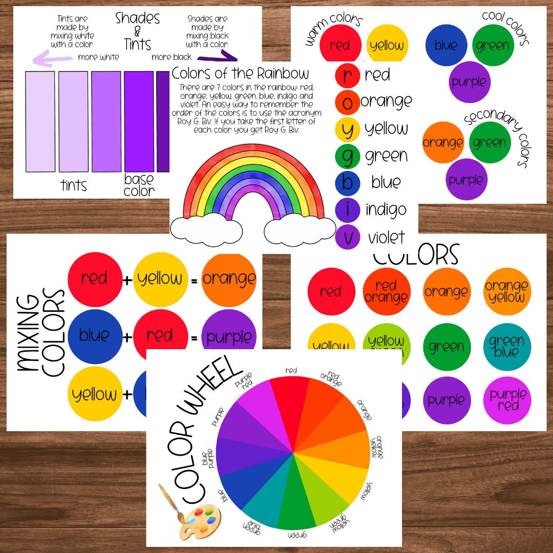 Hojas de trabajo de teoría del color, páginas para colorear y actividades para niños - Etsy España