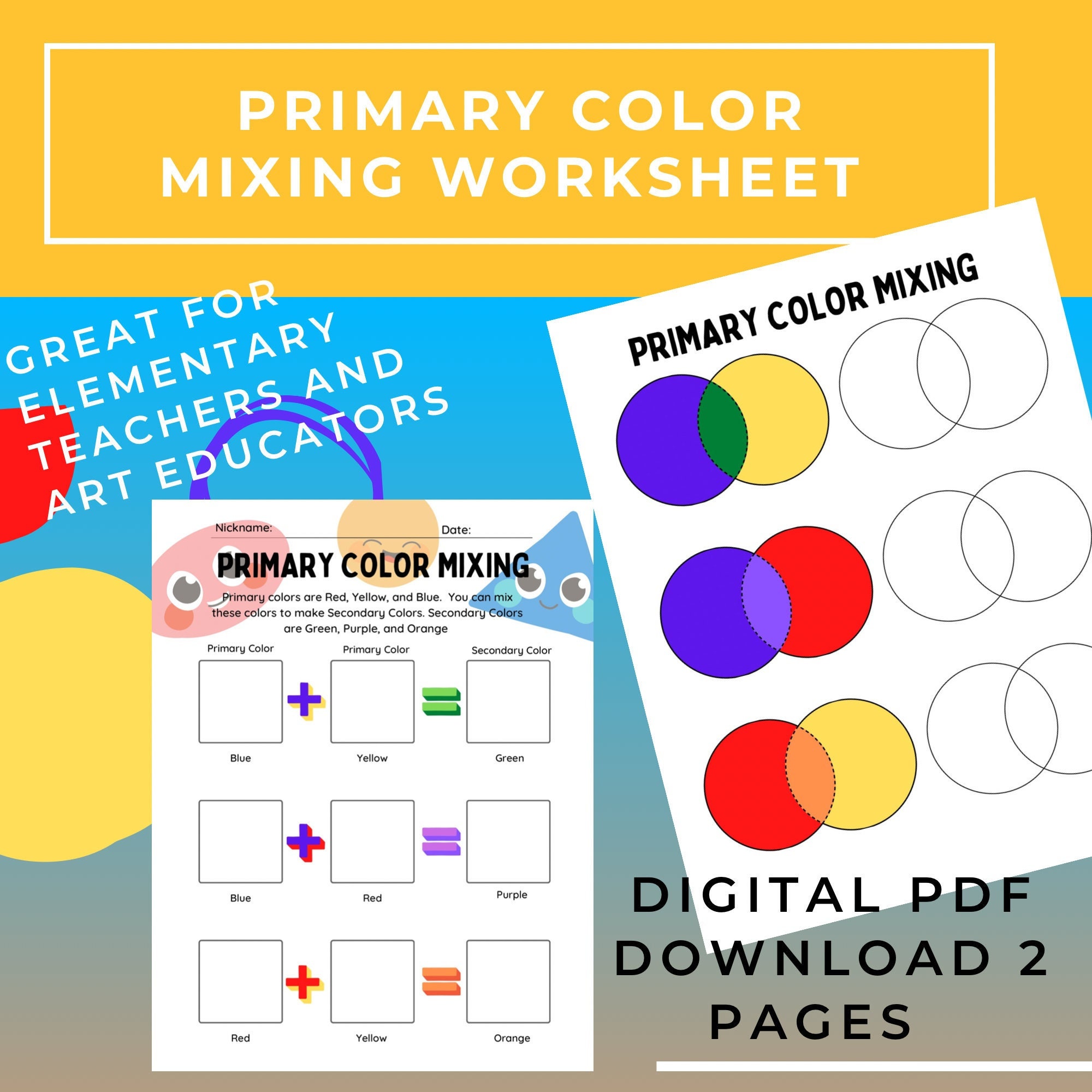 Hoja de trabajo de mezcla de colores primarios / Hoja de trabajo de arte / Teoría del color secundario primario / Hoja de trabajo de educación artística / Descarga digital de arte