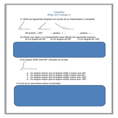 Hojas de trabajo angulos | PDF