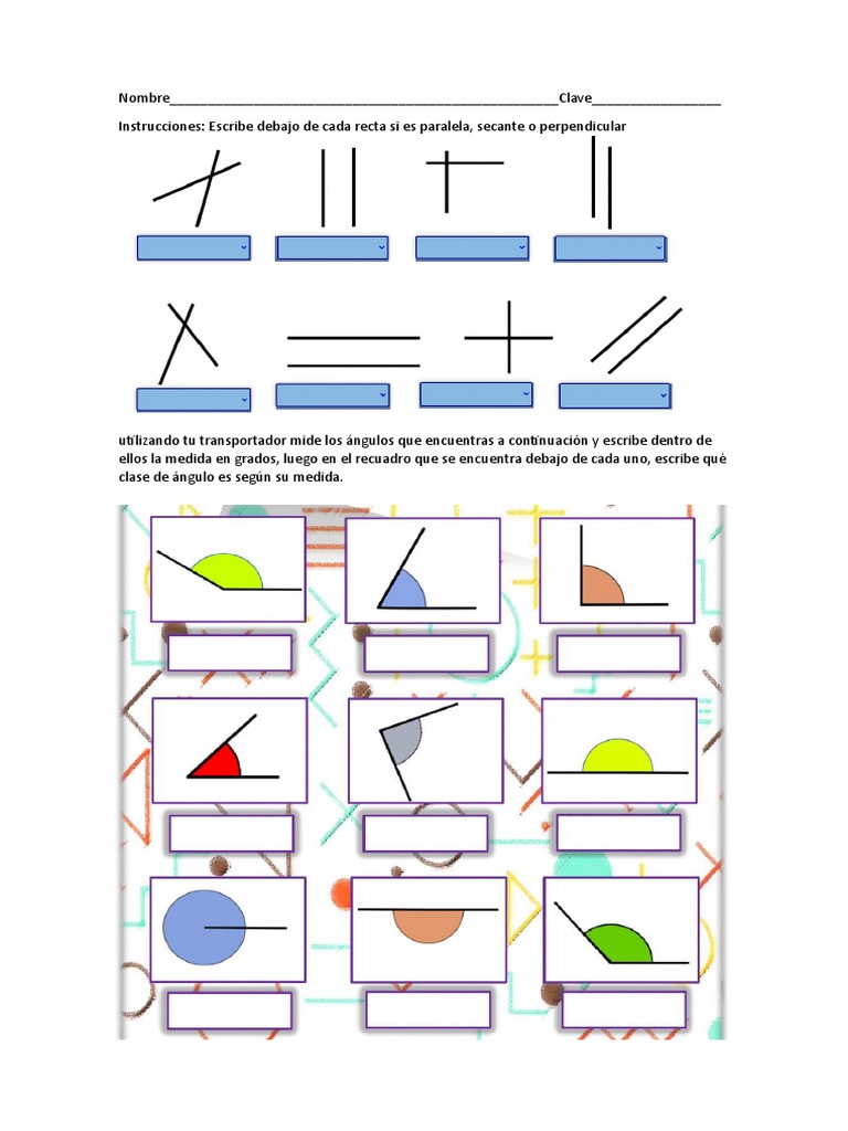 HOJA DE TRABAJO -3 CLASIFICACION DE ANGULOS Y TIPOS DE RECTAS--CUARTO PARCIAL online exercise for | Live Worksheets