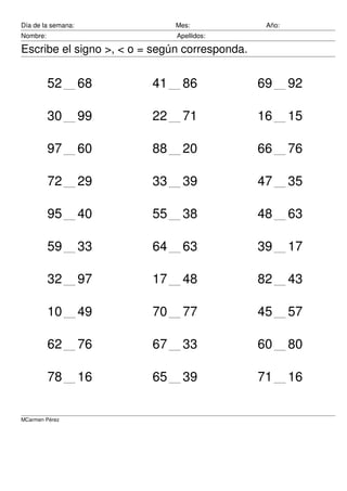 Ficha de actividad: Mayor que, menor que e igual- Guía de trabajo