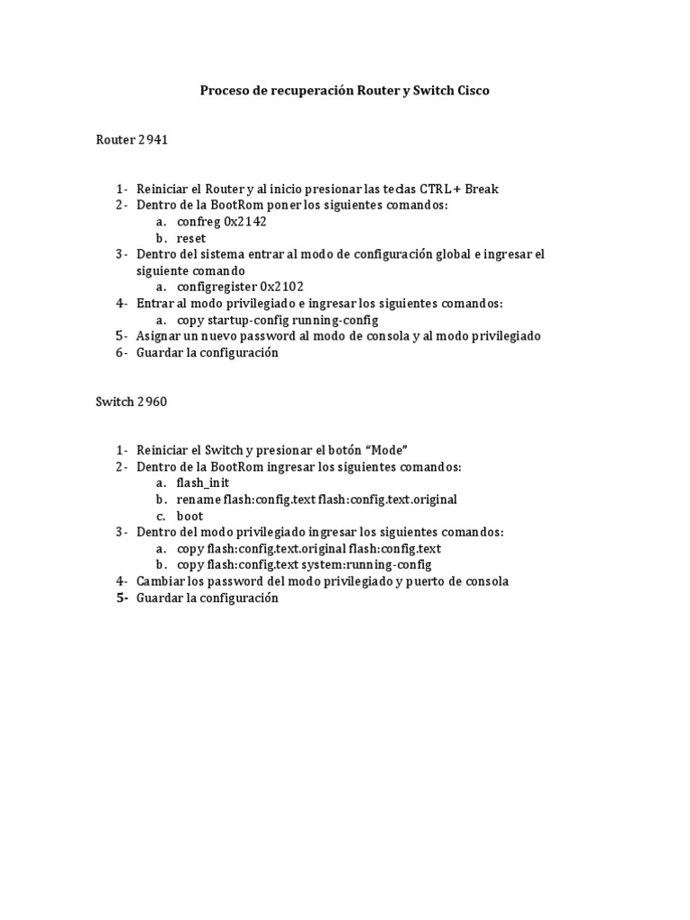 Recuperacion de Router y Switch Cisco y Extreme | PDF