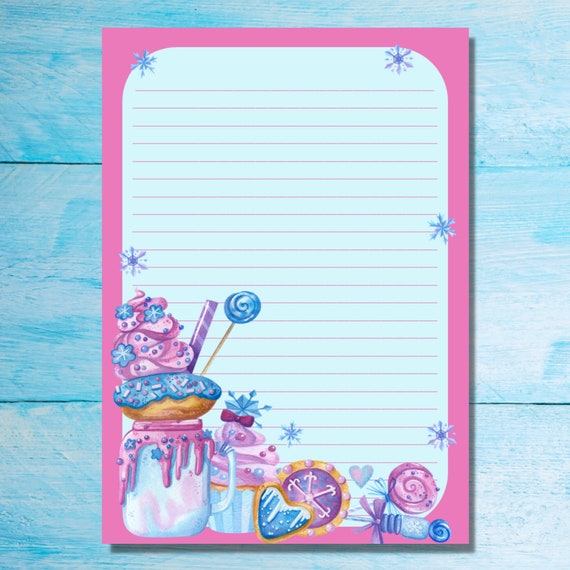 Papel para escribir cartas Frozen Sweets A5, suministros para amigos por correspondencia, hojas de cartas forradas o sin forrar papelería, Papel de notas lindo con o sin líneas - Etsy España