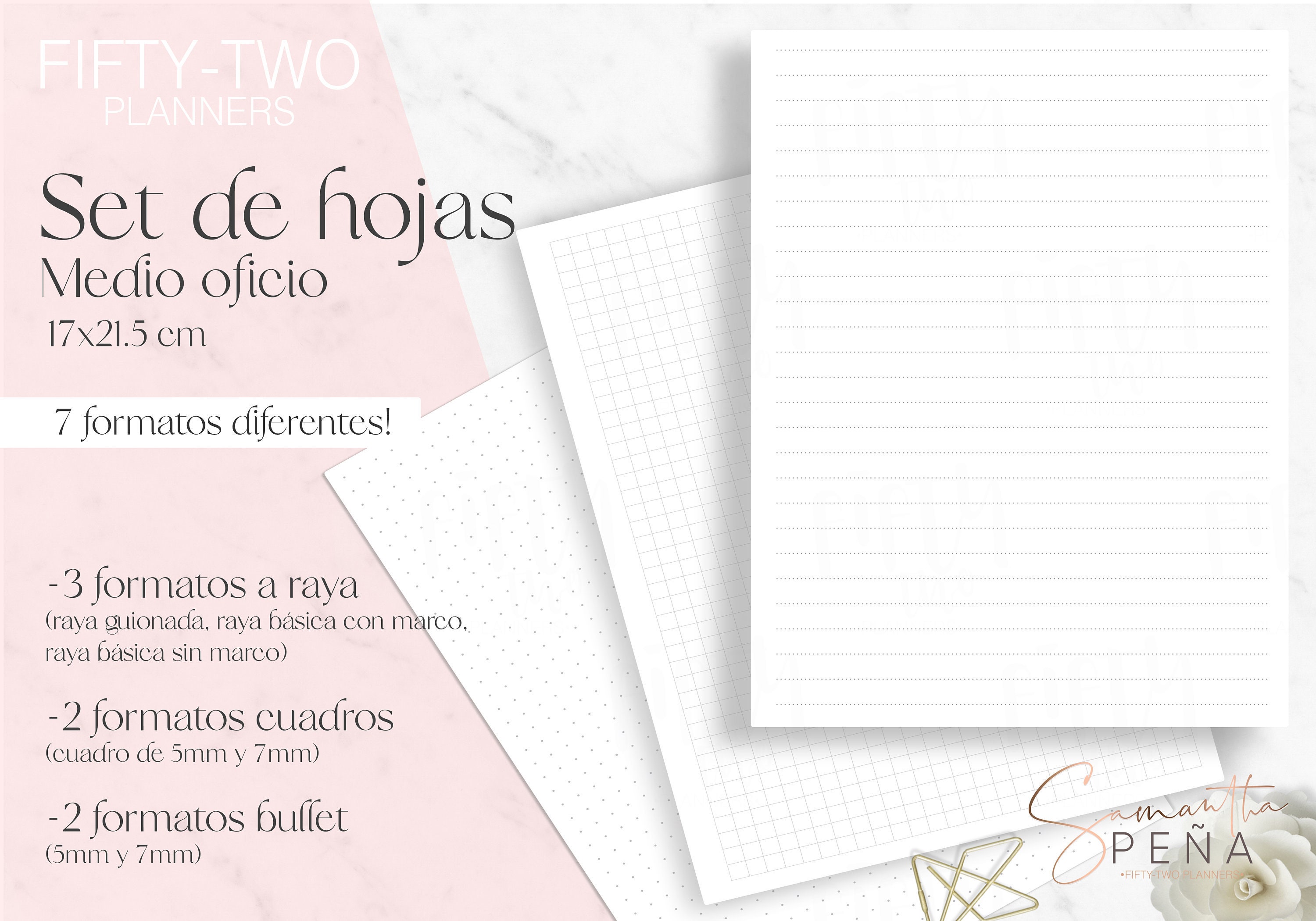 KIT DE HOJAS CUADRICULADAS - RAYADAS - PUNTEADAS | Agendas de Alma