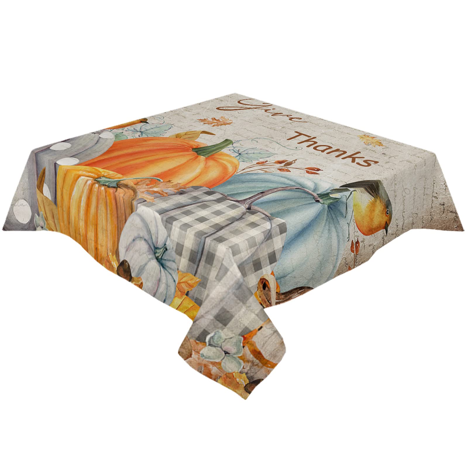 Mantel de otoño con hojas de arce y calabaza, para mesas rectangulares, 60 x 120 pulgadas, color gris, a cuadros, para Acción de Gracias, impermeable, lavable, para decoración de fiestas, pícnic, cena :