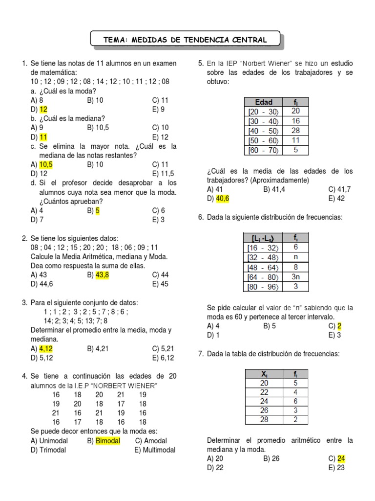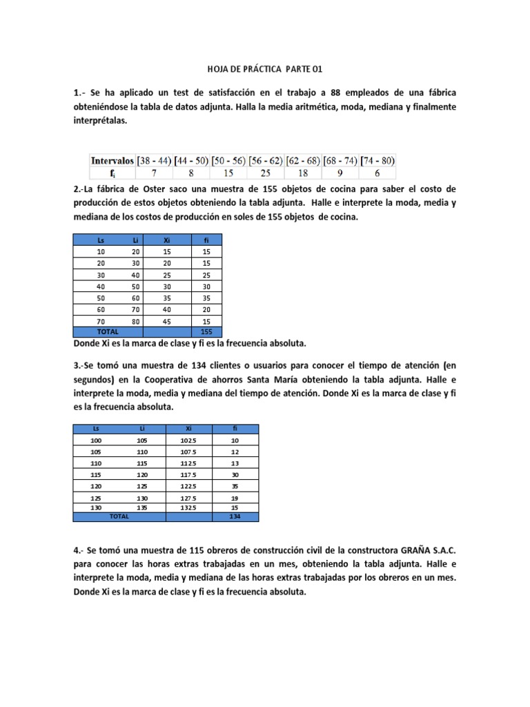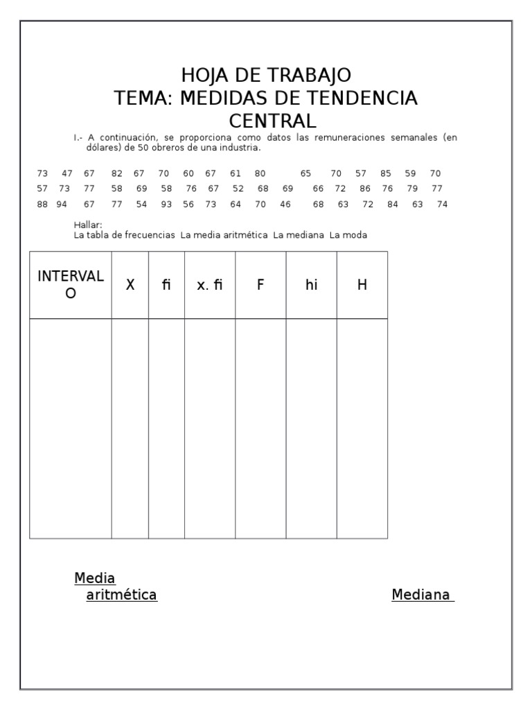 HOJA DE TRABAJO Medidas de Tendencia Central | PDF