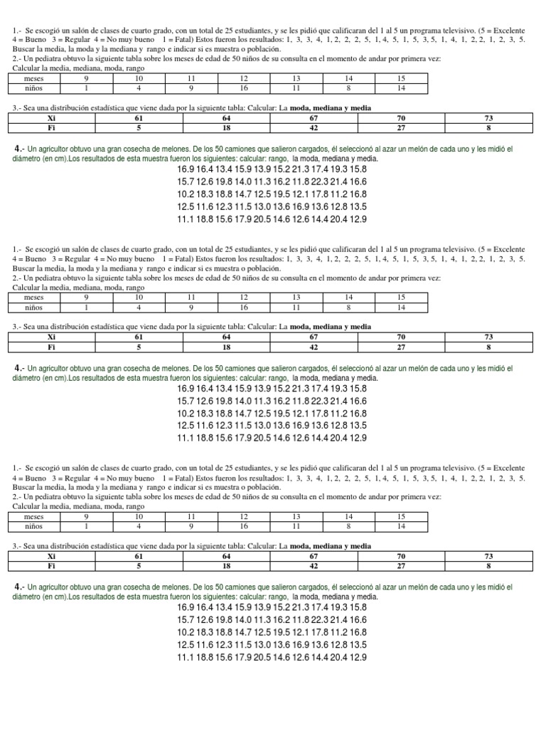Ejercicios Moda, Media, Mediana | PDF | Medicina | Bienestar