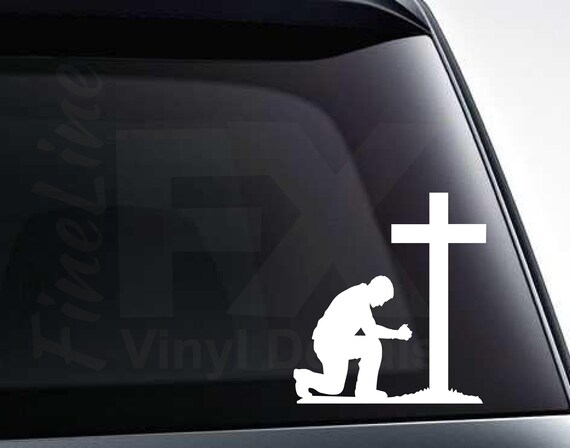 Hombre arrodillado en la cruz rezando vinilo Calcomanía / Calcomanía para ventanas de automóviles, computadoras portátiles, vasos y más - Etsy España