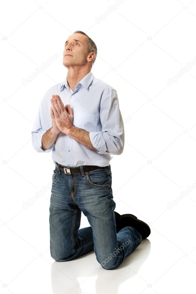 Hombre de rodillas rezando Imágenes recortadas de stock - Alamy