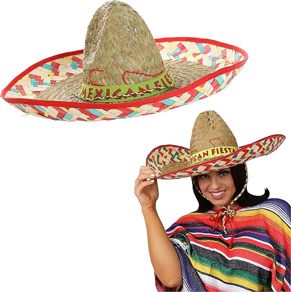 Sombrero de paja mexicano para hombre, rojo con banda con texto «Mexican Fiesta», para disfraces, despedidas de soltero y vacaciones : Amazon.es: Juguetes y juegos