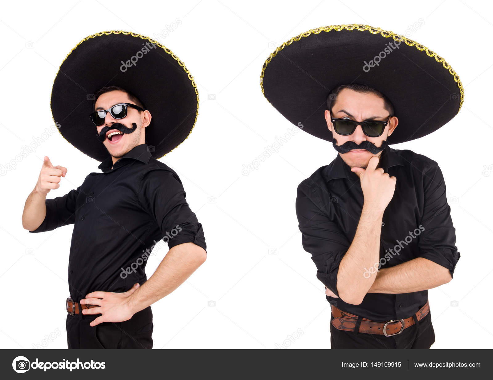 Hombre Divertido Con El Sombrero De Sombrero Mexicano Aislado En Blanco Fotos, retratos, imágenes y fotografía de archivo libres de derecho. Image 80893179