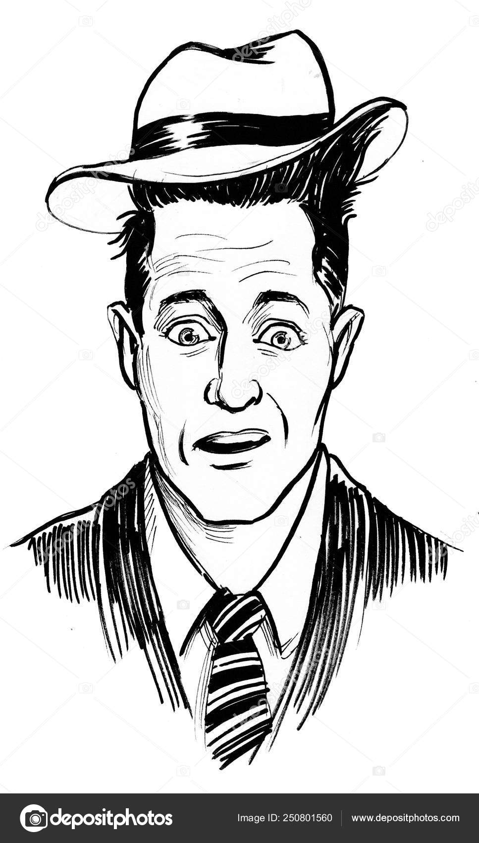 Vector de dibujo de hombre aterrorizado en blanco y negro | Vectores de dominio público