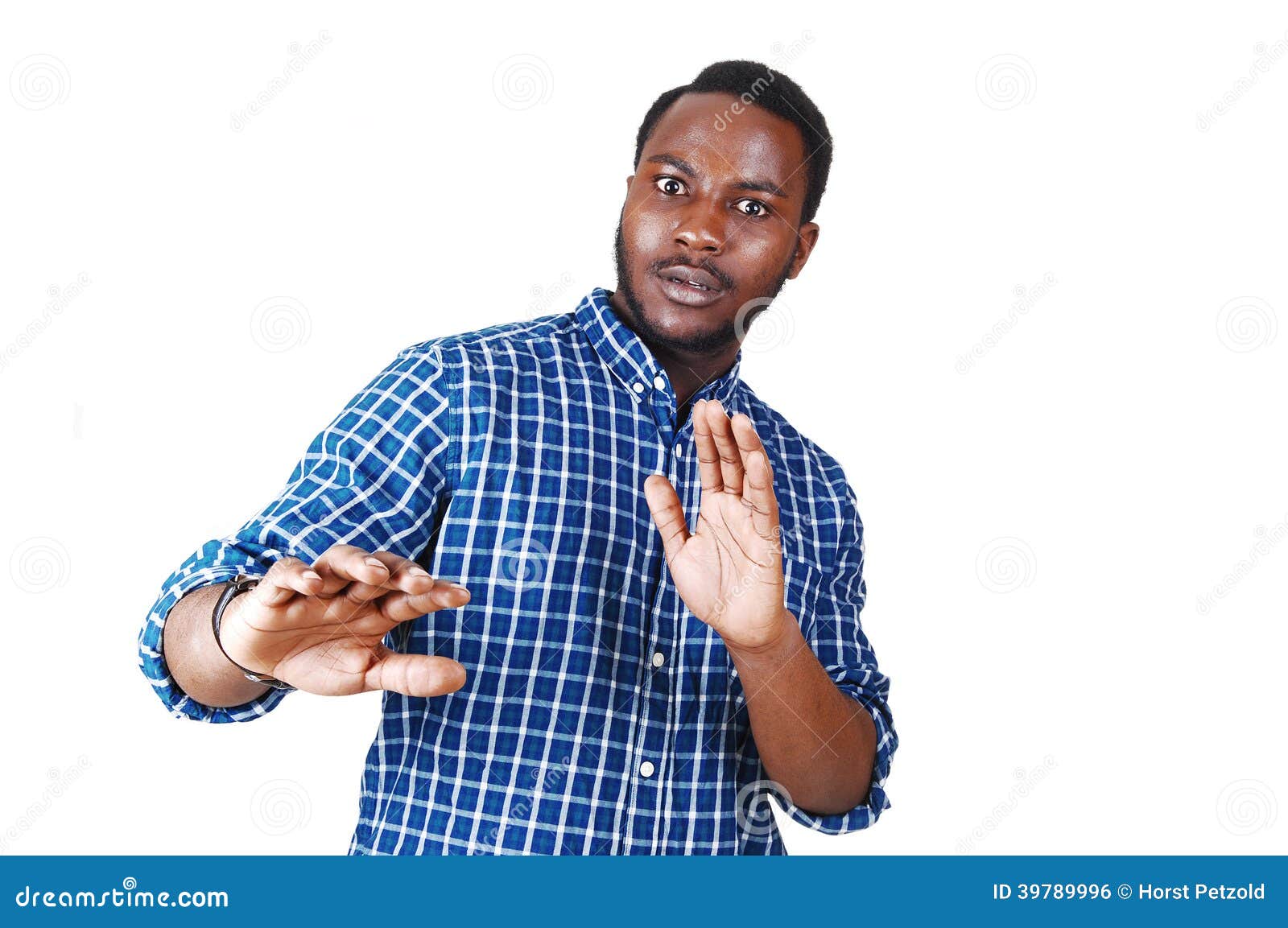 Hombre negro asustado. foto de archivo. Imagen de manos - 39789996