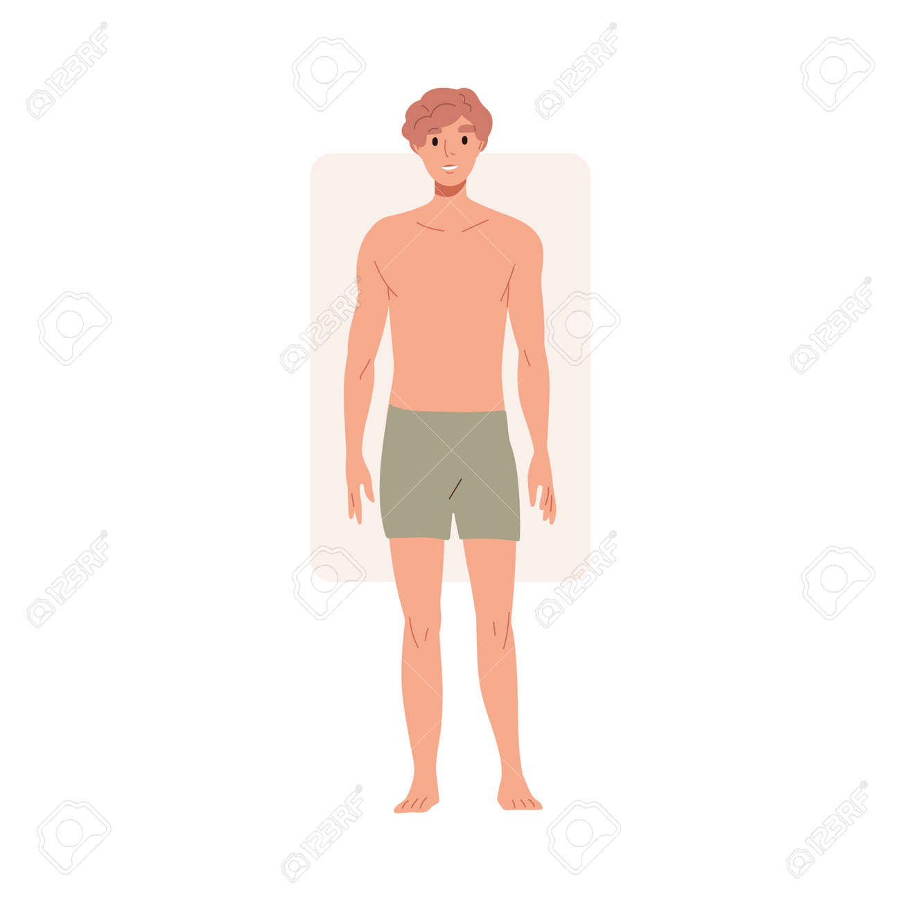 Hombre Con Forma De Cuerpo Rectangular. Retrato Masculino Con Figura Tipo Rectangular. Persona Esbelta Delgada En Baúles Con Proporción Recta, Físico. Ilustración De Vector Plano Aislado Sobre Fondo Blanco Ilustraciones svg, vectoriales,