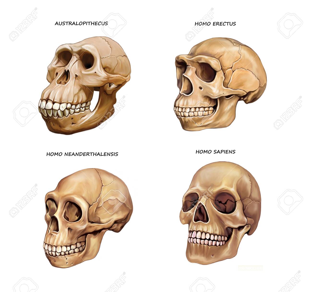 Evolution of human skull ( Sahelanthropus tchadensis . Australopithecus africanus . Homo erectus . Homo neanderthalensis . Homo sapiens ) Stock Photo | Adobe Stock