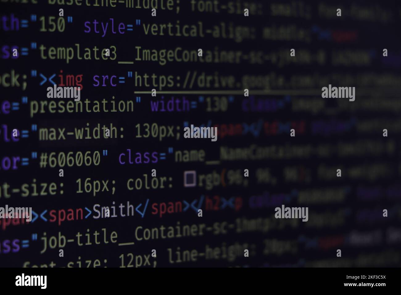 Texto HTML en neón colocado en estilo futurista y tecnológicamente avanzadas con códigos de fondo Fotografía de stock - Alamy
