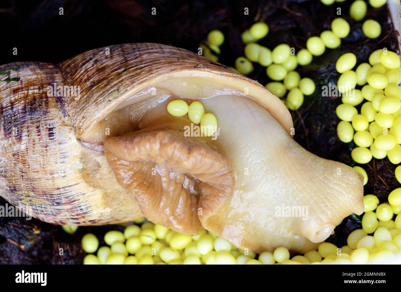 El caracol Achatina pone huevos. Embrague de huevos Fotografía de stock - Alamy