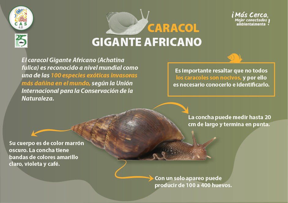 CAS on X: "#IMPORTANTE | 🐌 #CaracolGiganteAfricano (𝐴𝑐ℎ𝑎𝑡𝑖𝑛𝑎 𝑓𝑢𝑙𝑖𝑐𝑎). • Tenga en cuenta 📝las siguientes recomendaciones para evitar la propagación de este molusco. Es importante aprender a reconocer 🔍 esta especie invasora