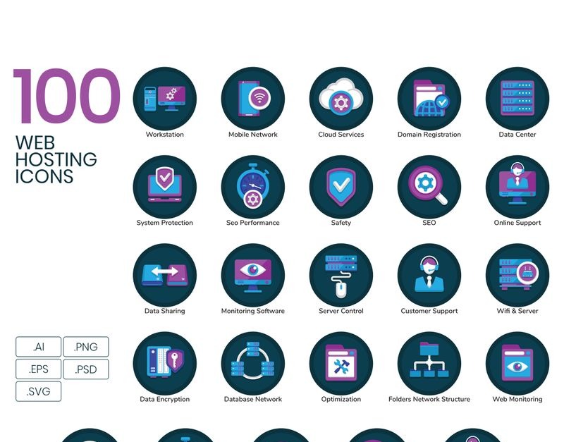 100 Íconos de alojamiento web, Iconos Incluyendo: web y iconos - Envato Elements