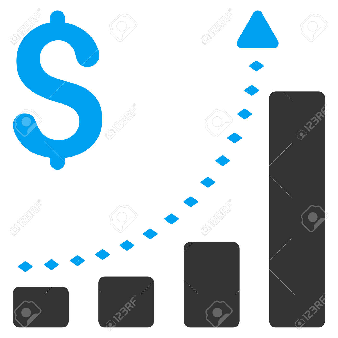 Negocios Gráfico De Barras Tendencia Positiva Icono De La Barra De Herramientas De Vectores. El Estilo Es El Símbolo Plana Icono, Color, Fondo Blanco, Puntos Rombo. Ilustraciones svg, vectoriales, clip art vectorizado