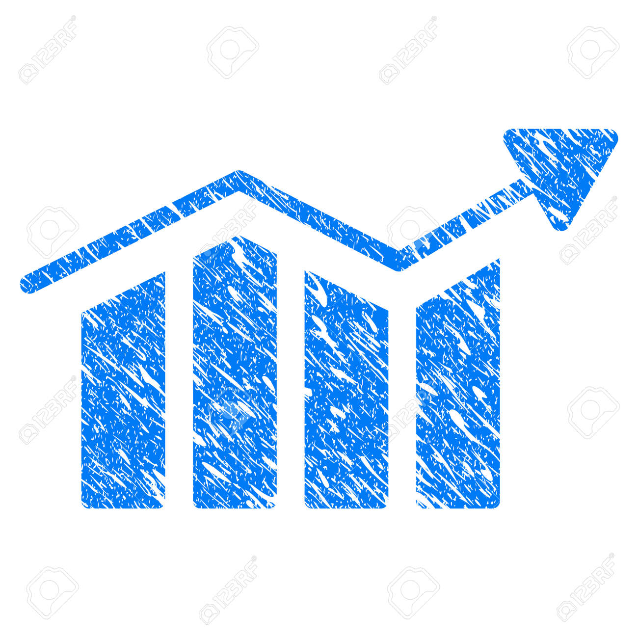 Icono De Tendencia De Gráfico De Barras De Grunge Con Diseño Rayado Y Textura Grunge. Pictograma De Barra De Mapa De Barras Azul Raster Borroso Para Sellos De Goma Imitaciones Y Marcas