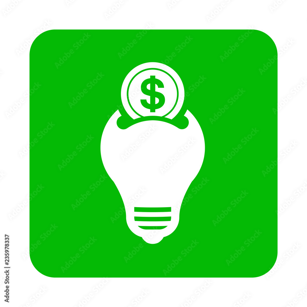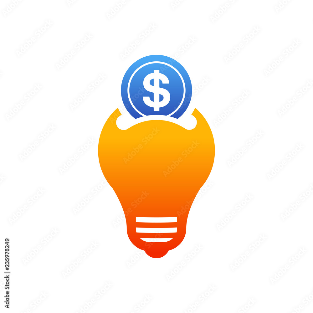 Icono plano bombilla led como hucha con moneda de dólar en fondo ...
