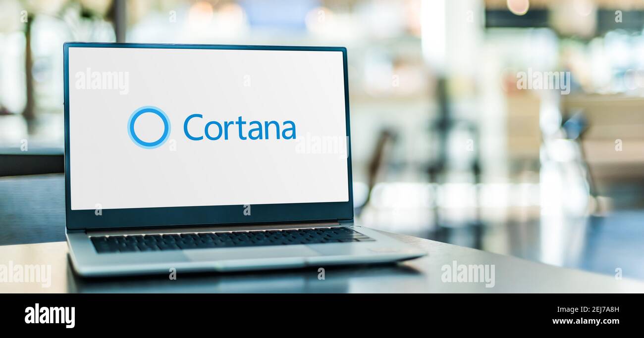 POZNAN, POL - JUL 25, 2020: Ordenador portátil mostrando el logo de Cortana, un asistente virtual desarrollado por Microsoft Fotografía de stock - Alamy