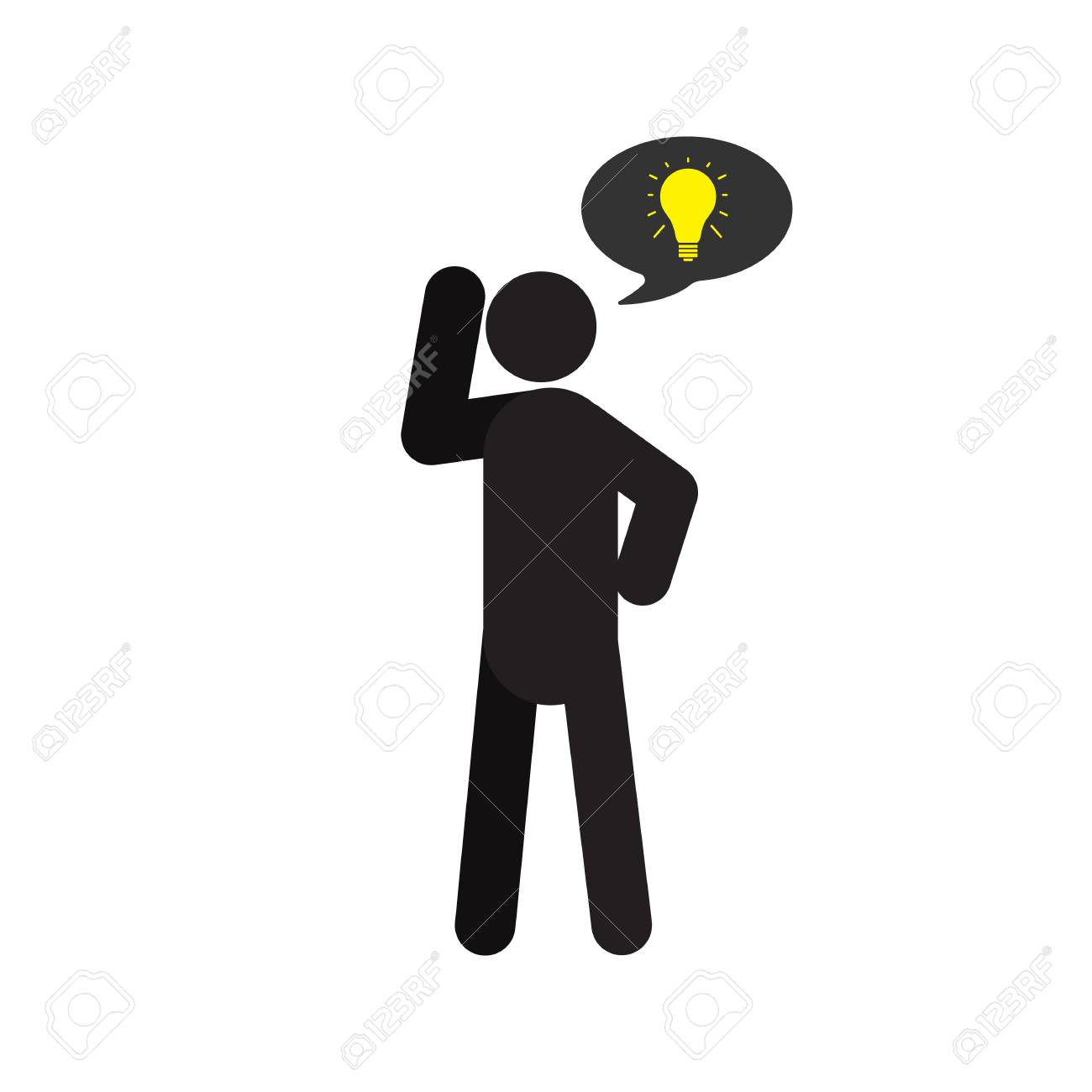 Pensando Hombre Silueta Icono. Persona Con Bocadillo Y Bombilla De Luz Ilustración Vectorial Aislado Ilustraciones svg, vectoriales, clip art vectorizado libre de derechos. Image 95081510
