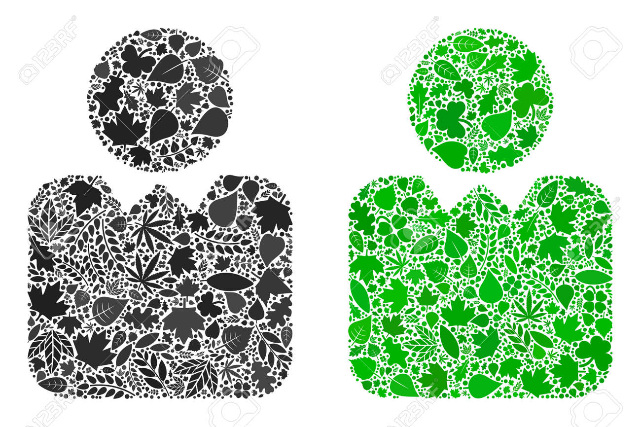 Composición Del Icono De La Persona Ecológica De Hojas De Hierbas En Tintes De Color Verde Y Natural. Plantilla De Vector De Entorno Ecológico Para Icono De Persona. La Imagen Vectorial De