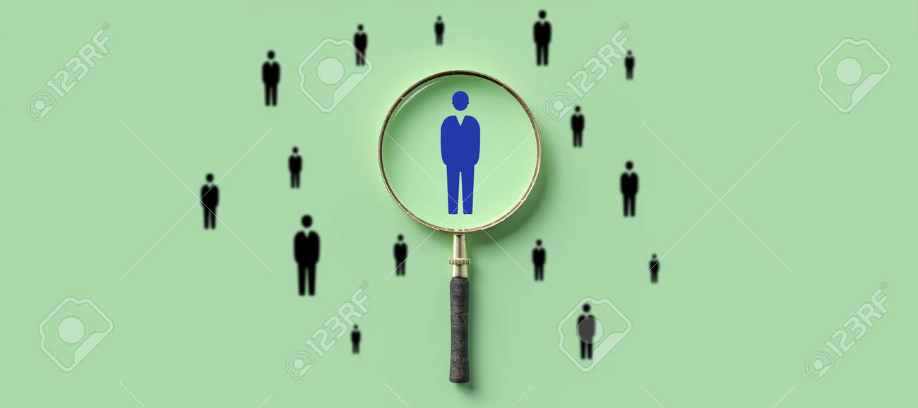 Lupa Resaltando Un Icono De Persona En Un Grupo De Personas Sobre Fondo Verde - Ilustración 3d Fotos, retratos, imágenes y fotografía de archivo libres de derecho. Image 155770982