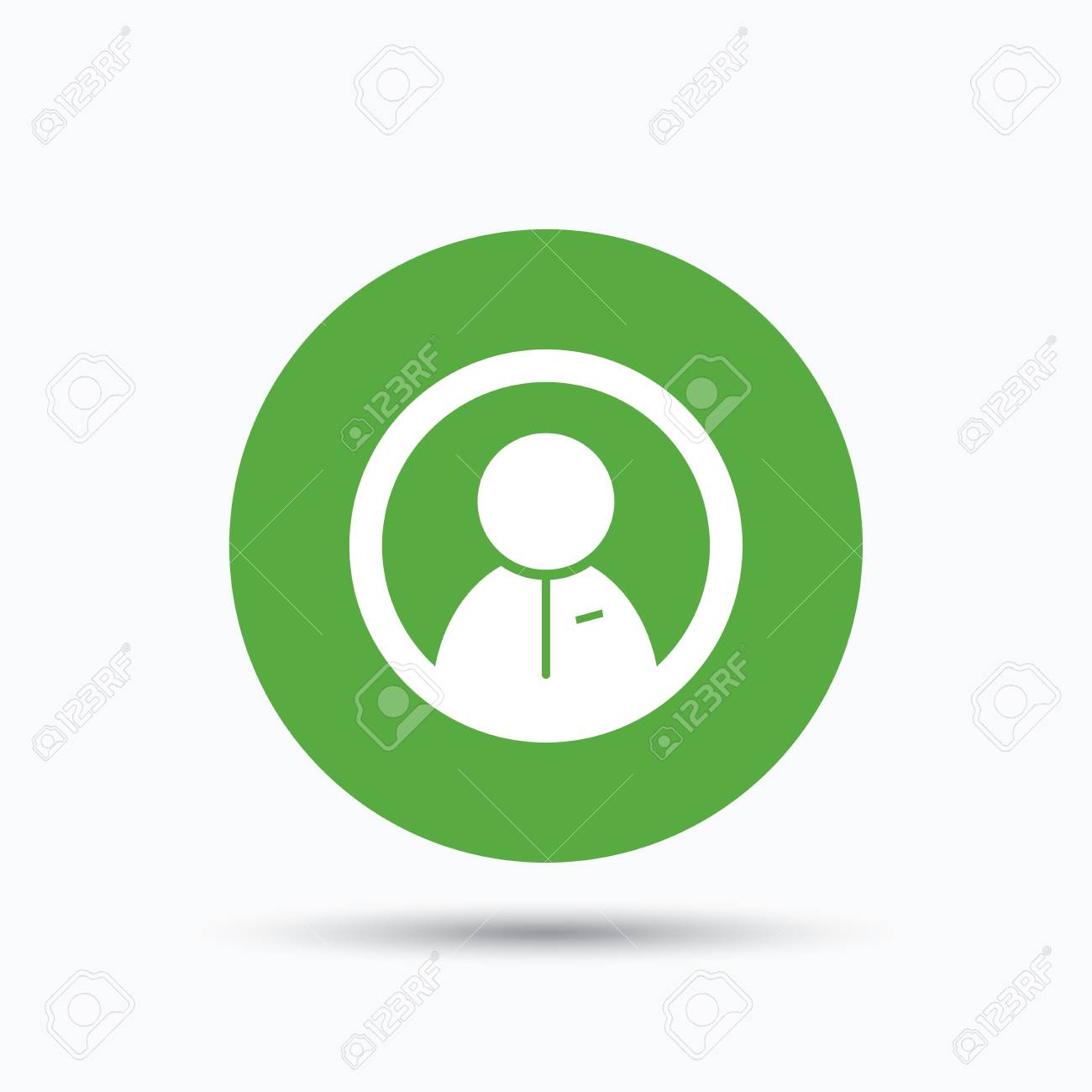 Icono De Usuario. Símbolo De La Persona Humana. Botón Con El Icono De Banda Plana En El Fondo Blanco. Botón De Control Redondo Verde Con La Sombra. Vector Ilustraciones svg, vectoriales, clip