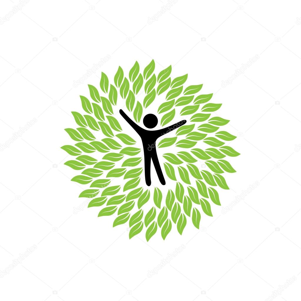 Icono De La Estación De La Naturaleza De La Persona Verde De La Hoja De La Persona. Ilustración Aislada Y Plana. Gráfico Vectorial Ilustraciones svg, vectoriales, clip art vectorizado libre de derechos.