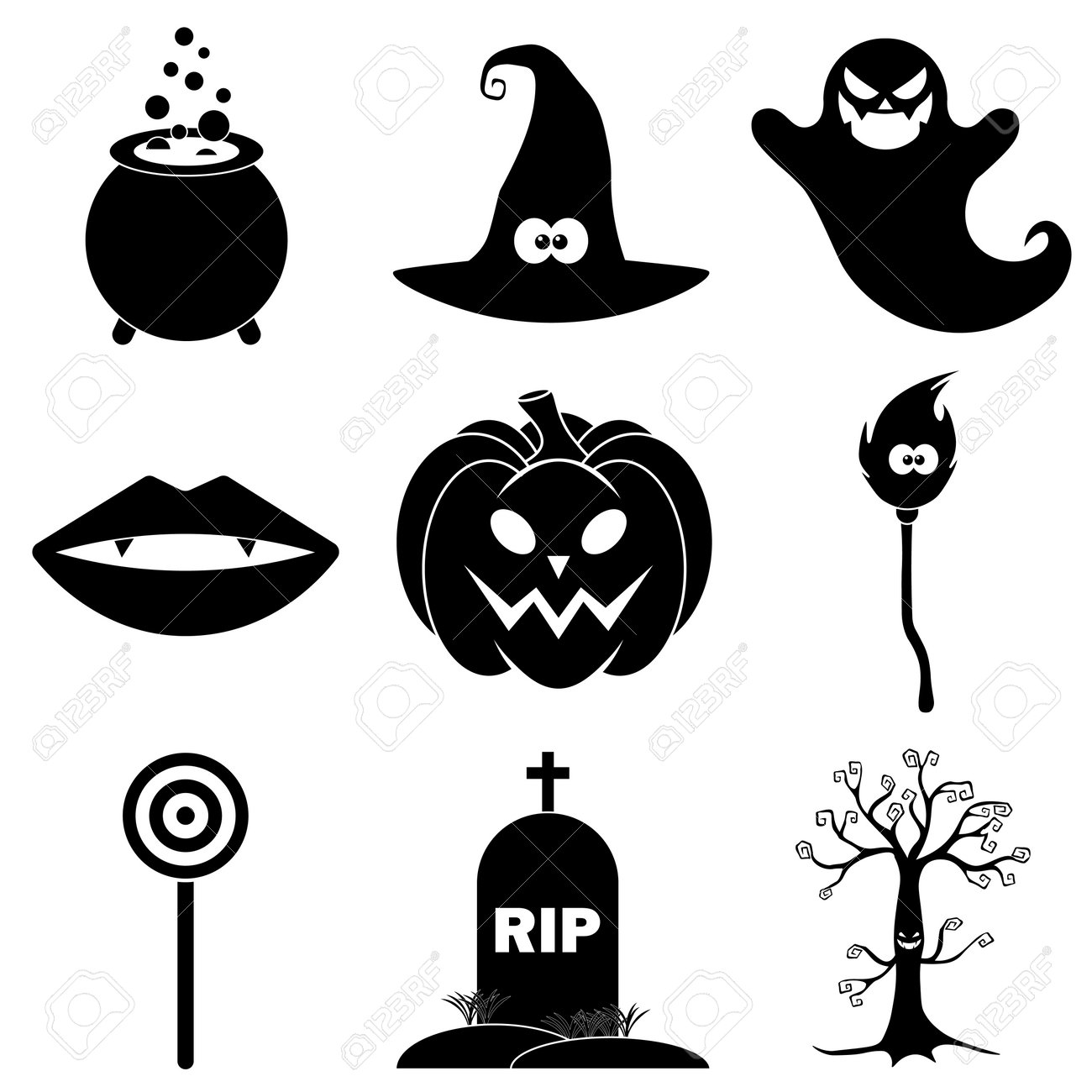 Iconos De Víspera De Todos Los Santos Sistema De Las Siluetas Para Halloween Ilustración Del Vector En El Fondo Blanco Stock de ilustración - Ilustración de cartel, temeroso: 100588551