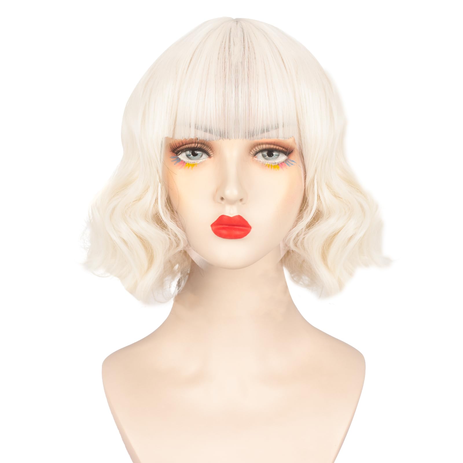 Amazon.com : Askuang Short Blonde Wig With Bangs Curly Wavy Blonde Wigs for Women Halloween Cosplay Girls Costume Party Wig 12-Inches : Beauty & Personal Care