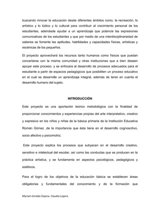 Proyecto artístico cultural: EL ARTE Y LA CULTURA UN MUNDO POR DESCUBRIR | PDF