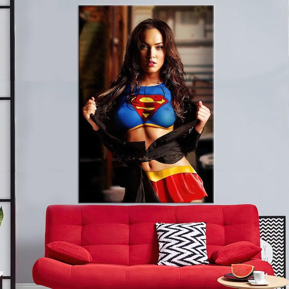 Megan Fox Superwoman Wall Art, Megan Fox Canvas, Arte de estilo de moda, Cartel de arte
