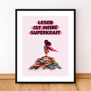 Cartel de lectura, cartel de libro, decoración de la habitación de los niños, decoración del aula, decoración de la biblioteca, la lectura es mi superpoder, regalo del amante del libro, arte imprimible -