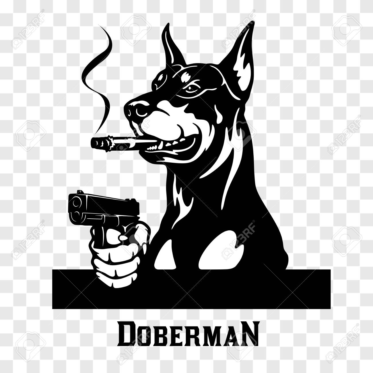 Doberman With Guns - Doberman Gangster. Head Of Angry Doberman ...