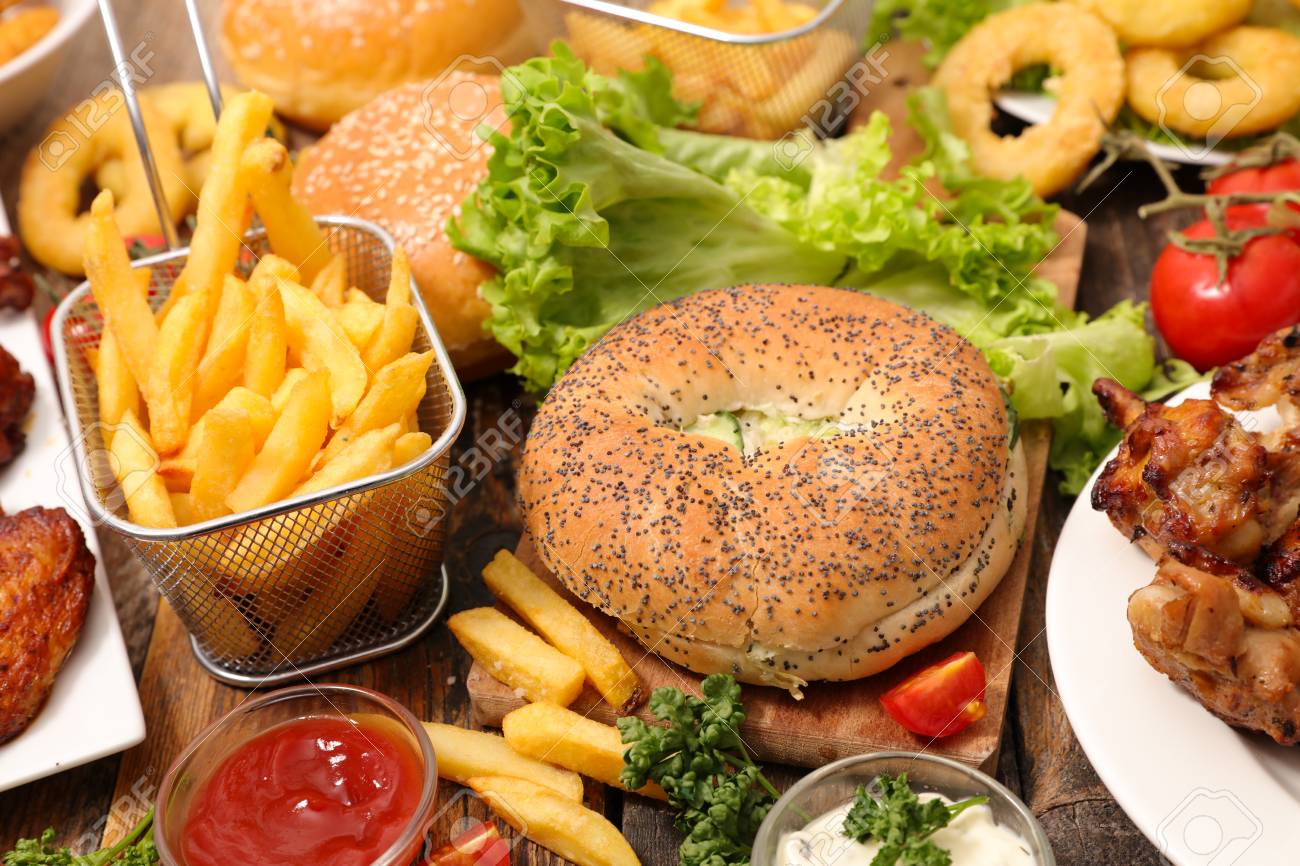 Selección De Comida Chatarra, Comida Americana Fotos, retratos, imágenes y fotografía de archivo libres de derecho. Image 99161902