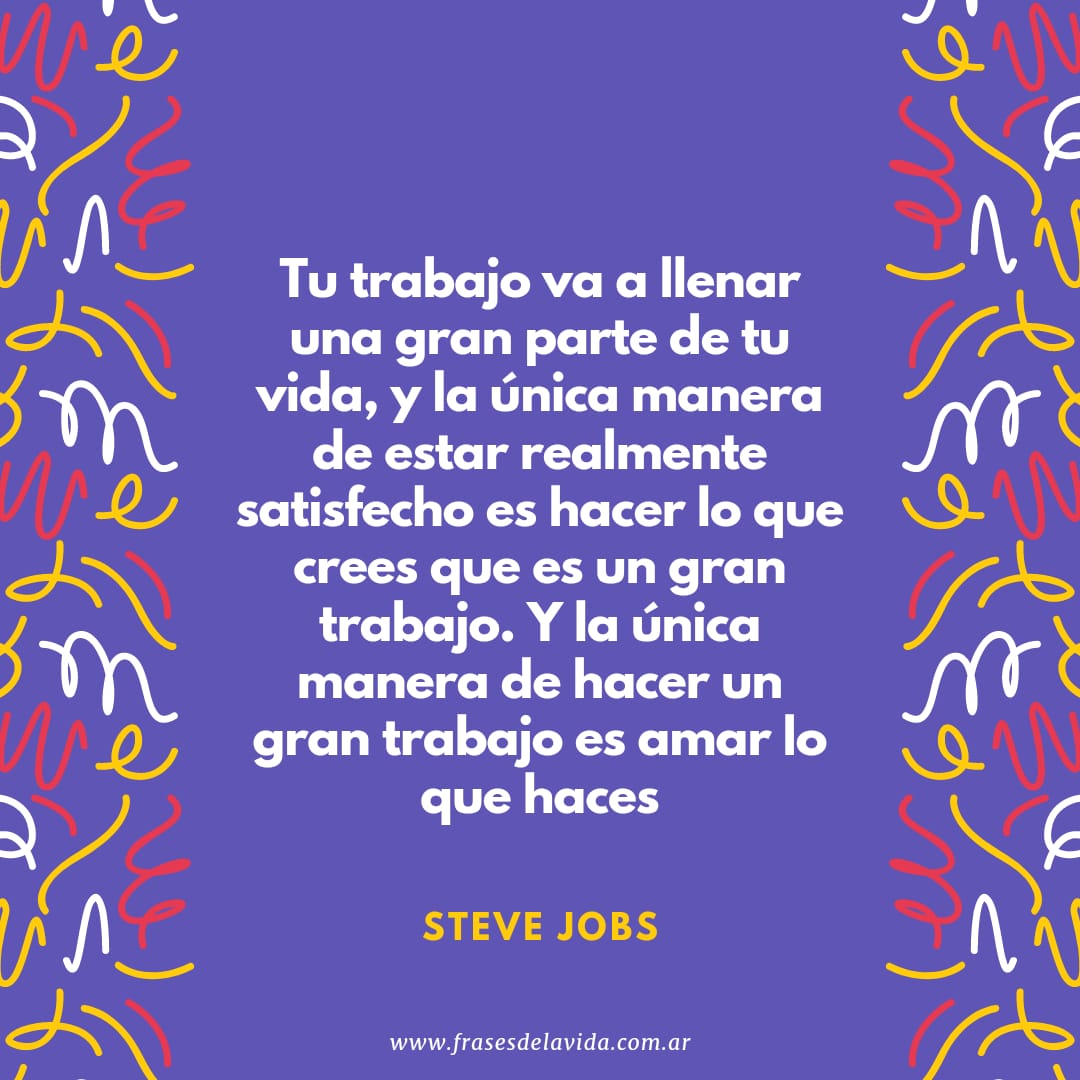 Tu trabajo va a llenar una gran parte de tu vida, y la única manera de estar realmente satisfecho es hacer lo que crees que es un gran trabajo. Y la única