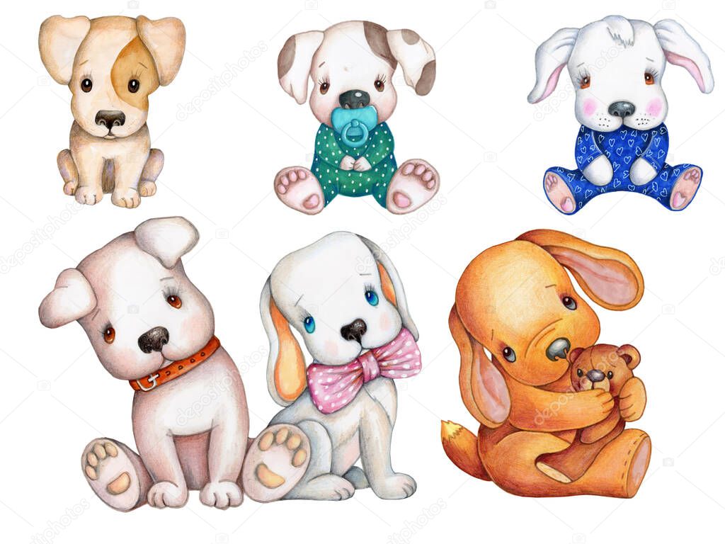 Perros Lindos Cachorros Acuarela Dibujada Mano Ilustraciones Aisladas Colección Mascotas Ilustración de stock por © [email protected] # 361607826