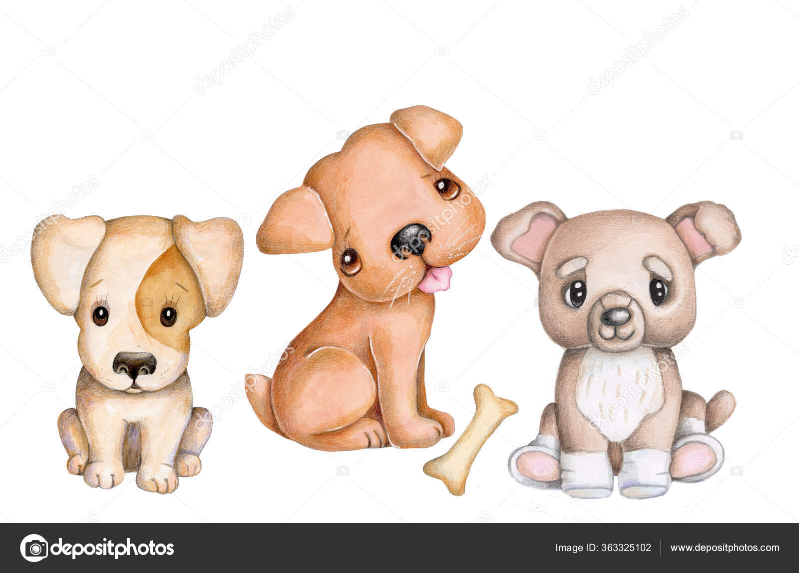 Acuarela Ilustración Dibujada Mano Lindos Perros Dibujos Animados Perrito Cachorro Ilustración de stock de ©[email protected] #363325102