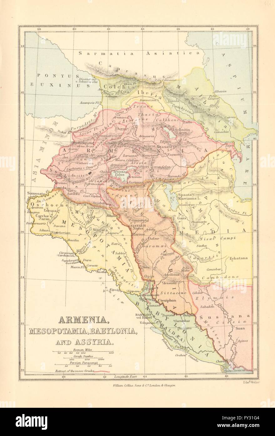 El antiguo imperio persa. Muestra el retiro de 10.000 griegos. Cyrus joven, 1876 mapa Fotografía de stock - Alamy