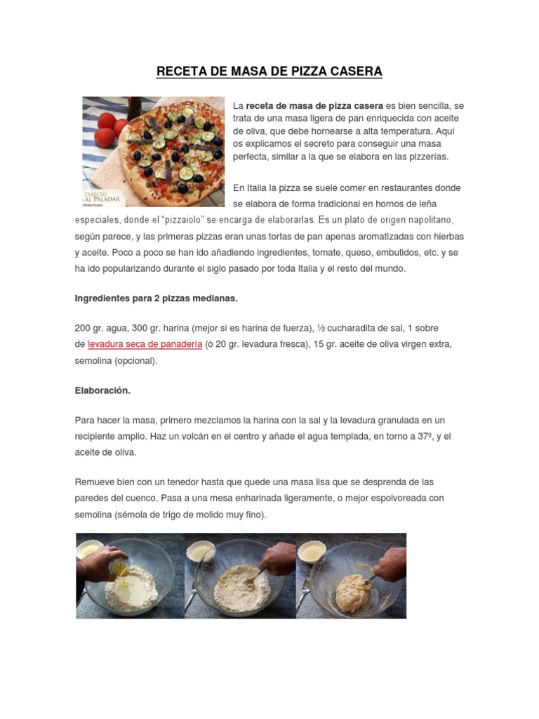 Receta de Masa de Pizza Casera | PDF | Pizza | Panes