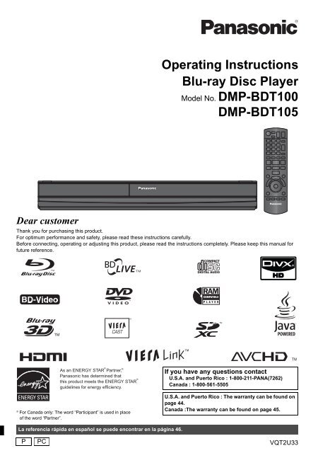 Operating Instructions Blu-ray Disc Player DMP-BD35 - Panasonic