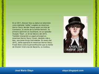 Entre Colores y Sombras - ¿Quién es Jamie Brewer?🤔🤔 Jamie Brewer nació en California el 5 de febrero de 1985 es una actriz y modelo estadounidense conocida por sus papeles en la